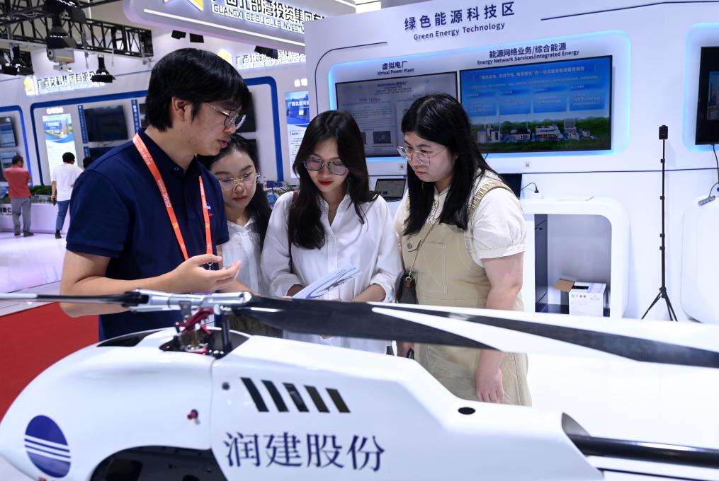 9月27日,在中国—东盟博览会上,参观者了解绿色能源装备。新华社记者陆波岸摄