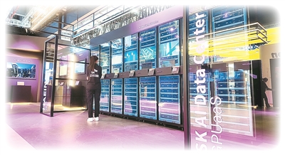 第八届进博会技术装备展区,韩国SK集团展位展出的AI数据中心。本报记者 林子涵摄