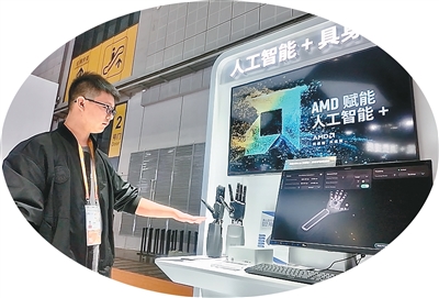 第八届进博会技术装备展区,参展商展示机器人灵巧手。本报记者 林子涵摄
