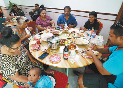 瑙鲁民众在当地一家中餐厅聚餐。